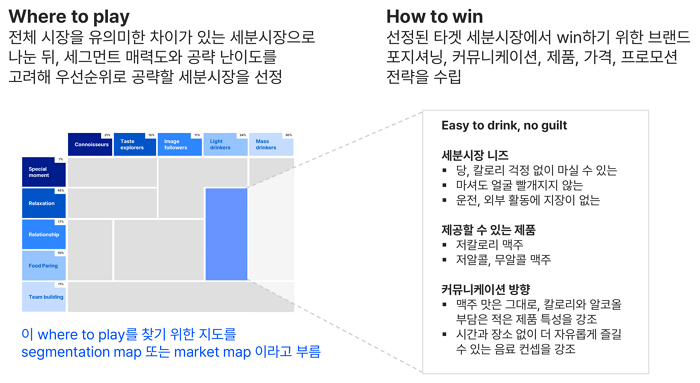 어느 시장 시장을 우선 공략할지(Where to play) 와 해당 시장에서 어떻게 경쟁력을 확보할지(How to win) 를 가장 크게 고려해야한다.
